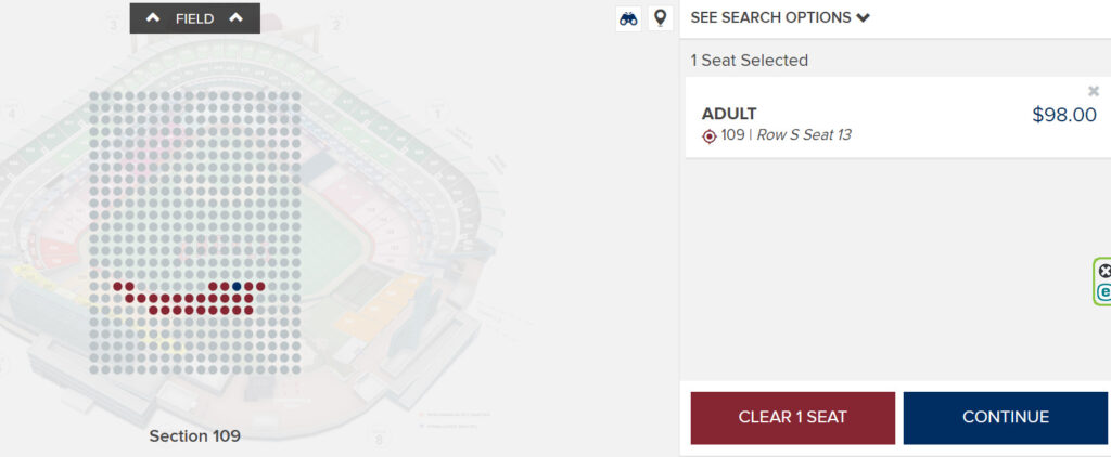 次に左側の"Single Game Tickets"の"Buy Tickets"をクリック