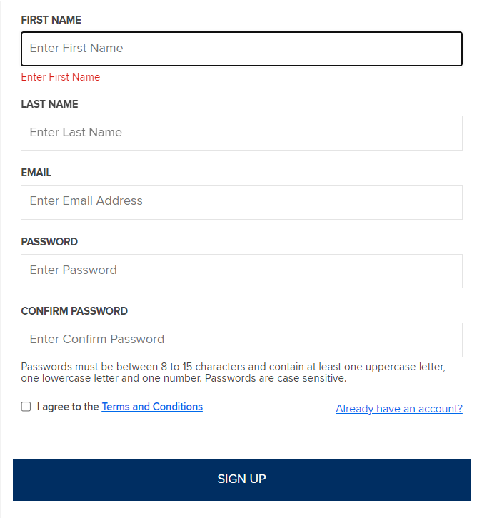 順番に姓名、Eメールアドレス、でパスワードを同じものを2回入力。