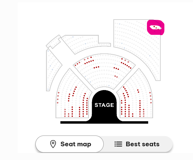 座席が出てくるので、ピンクの●部分のチケットが購入可能です。