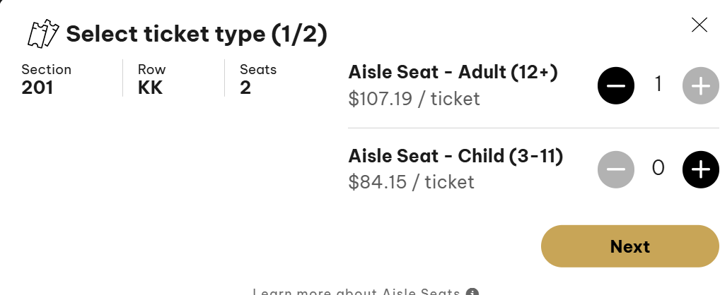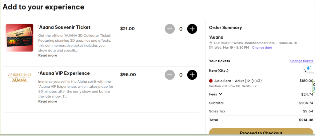 すると、追加でVIPの席とか買わないかい?と出てきますが、