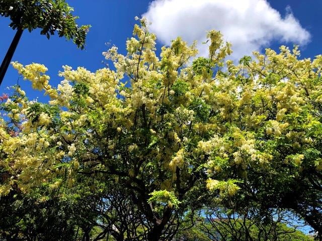 シャワーツリーも満開になるし、プルメリアもあちこちで見ることができます。あ