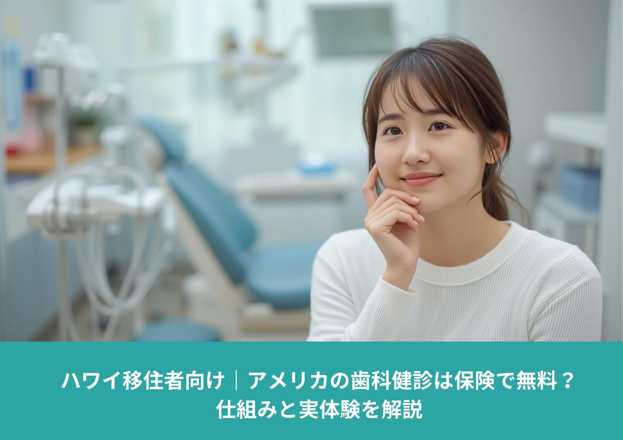 - ハワイ移住後、アメリカの歯科保険を使って受けられる歯科健診の仕組みや実体験を紹介する記事のアイキャッチ画像。初めての海外歯科でも安心できるイメージ。
