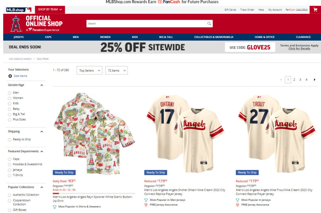エンゼルスグッズはどこで買える?オンライン、路面のお店、スタジアム内のグッズショップなどをご紹介。